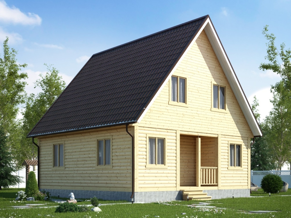 Привлекательный и функциональный проект 69 – полутораэтажный дом с (8х8 м.), собранный из профилированного бруса, имеет оптимальный, тщательно рассчитанный размер и доступную цену, что обеспечивает высокий спрос на все дома компании «Дача из бруса».