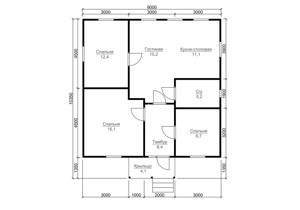 Удобно расположенные комнаты освещаются двойными зимними окнами. Дом общей площадью 75 кв.м. надежно защищен двускатная крышей, крытой ондулином заранее выбранной расцветки. Строгость в подборе высококачественных материалов является неизменной особенностью фирмы.