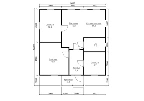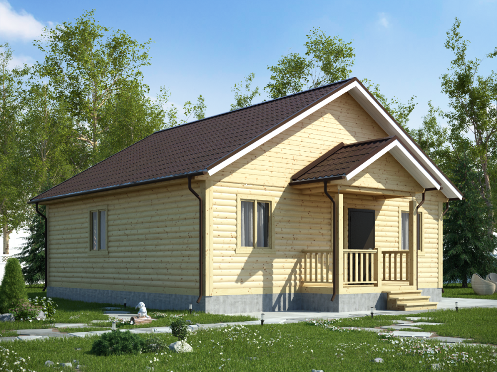 Привлекательный и функциональный проект 86 – одноэтажный дом с (9х9 м.), собранный из профилированного бруса, имеет оптимальный, тщательно рассчитанный размер и доступную цену, что обеспечивает высокий спрос на все дома компании «Дача из бруса».