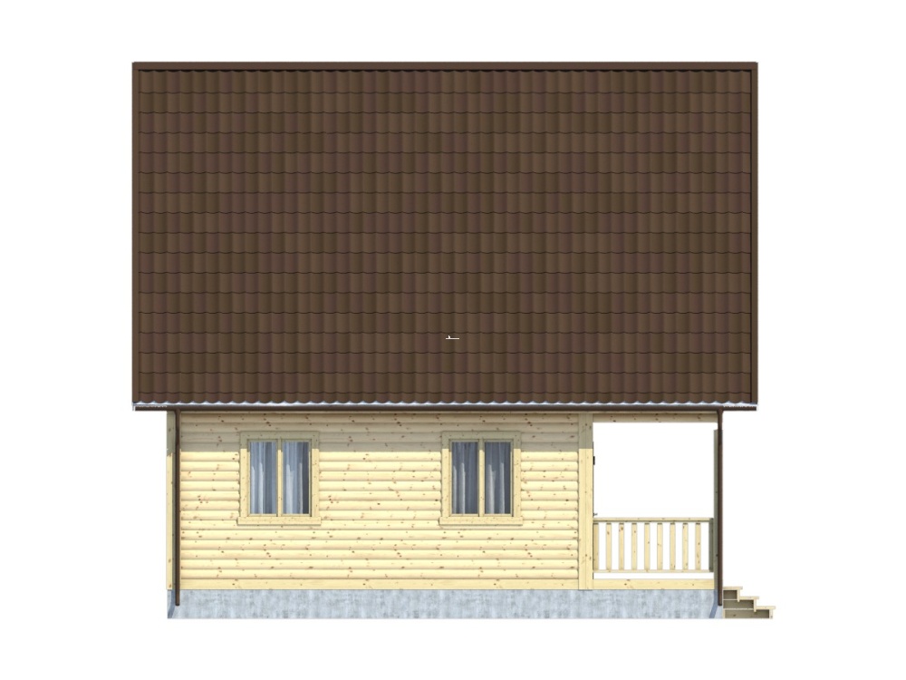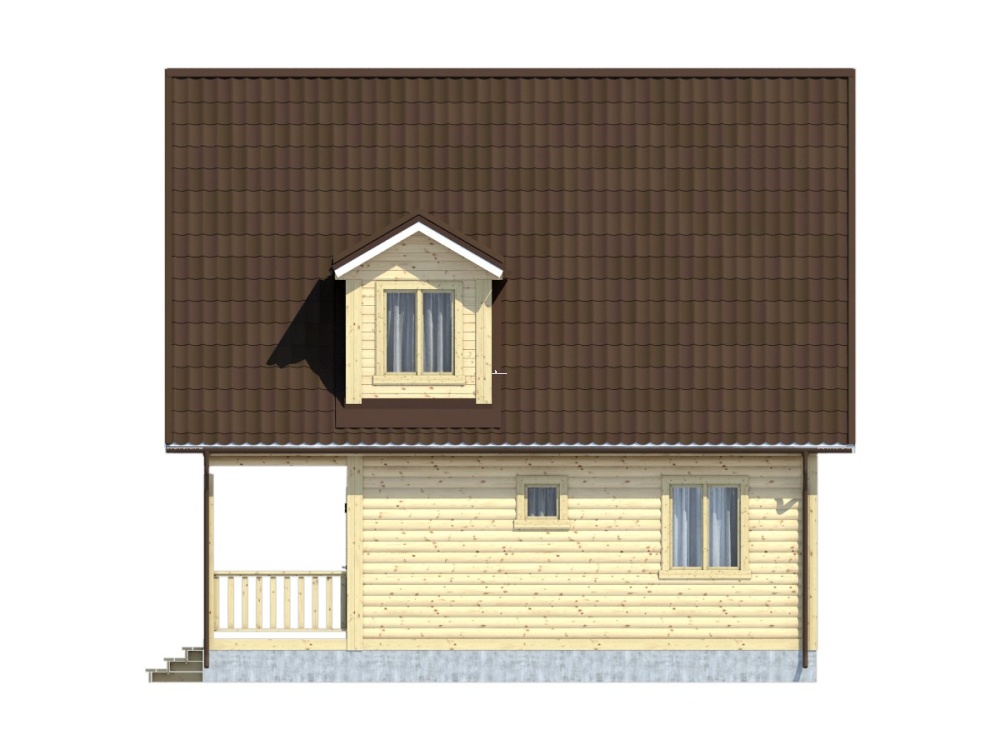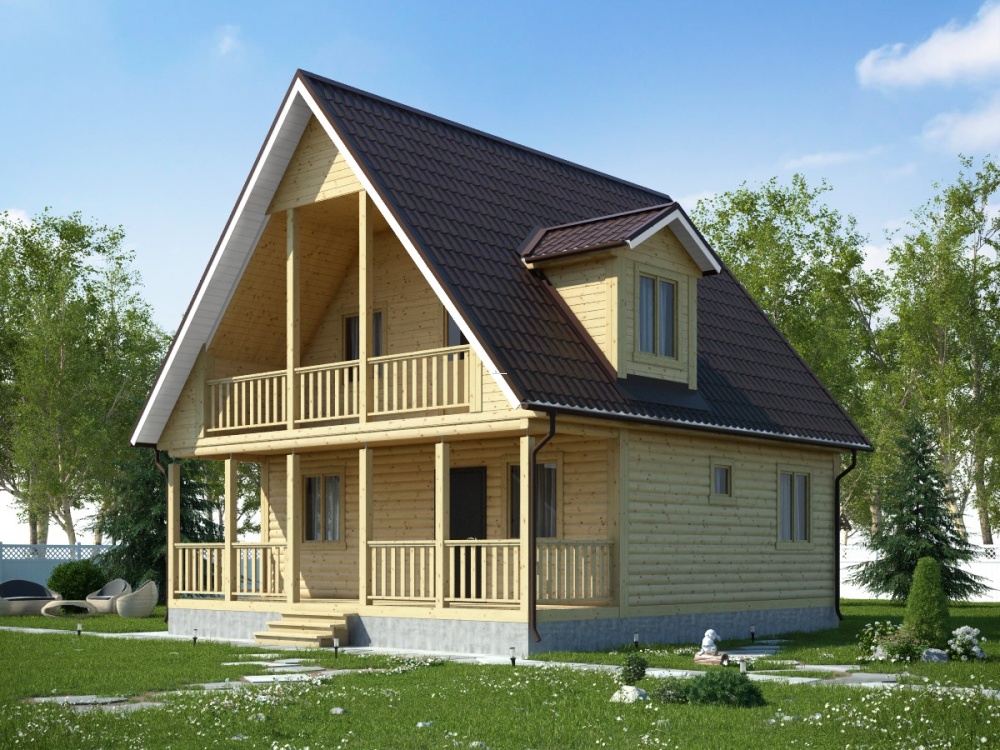 Привлекательный и функциональный проект 125 – полутораэтажный дом с балконом и большой террасой (8х8 м.), собранный из профилированного бруса, имеет оптимальный, тщательно рассчитанный размер и доступную цену, что обеспечивает высокий спрос на все дома компании «Дача из бруса».