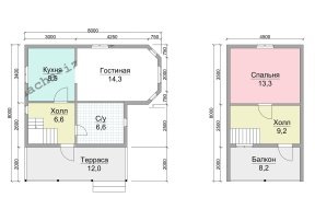 Удобно расположенные комнаты освещаются двойными зимними окнами. Дом общей площадью 58.5 кв.м. надежно защищен двускатная крышей, крытой ондулином заранее выбранной расцветки. Строгость в подборе высококачественных материалов является неизменной особенностью фирмы.
