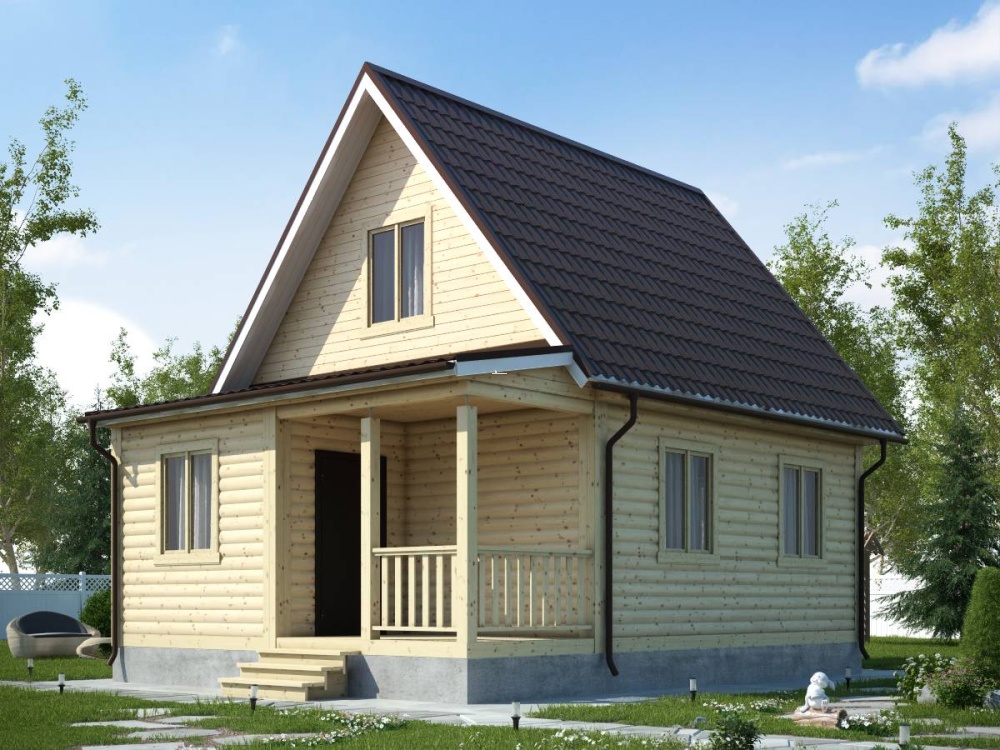 Привлекательный и функциональный проект 21 – полутораэтажный дом с (6х8 м.), собранный из профилированного бруса, имеет оптимальный, тщательно рассчитанный размер и доступную цену, что обеспечивает высокий спрос на все дома компании «Дача из бруса».