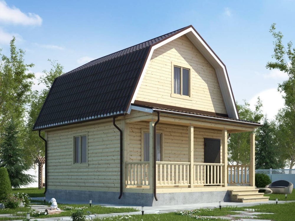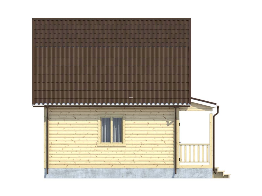 Привлекательный и функциональный проект 18 – полутораэтажный дом с маленькой террасой (6х7,5 м.), собранный из профилированного бруса, имеет оптимальный, тщательно рассчитанный размер и доступную цену, что обеспечивает высокий спрос на все дома компании «Дача из бруса».