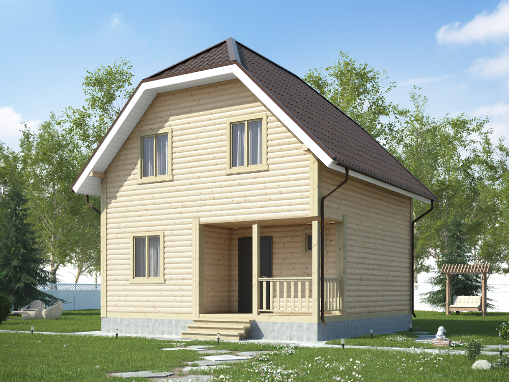 Привлекательный и функциональный проект 139 – полутораэтажный дом с террасой (7х7 м.), собранный из профилированного бруса, имеет оптимальный, тщательно рассчитанный размер и доступную цену, что обеспечивает высокий спрос на все дома компании «Дача из бруса».