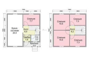 Удобно расположенные комнаты освещаются двойными зимними окнами. Дом общей площадью 90 кв.м. надежно защищен двускатная крышей, крытой ондулином заранее выбранной расцветки. Строгость в подборе высококачественных материалов является неизменной особенностью фирмы.
