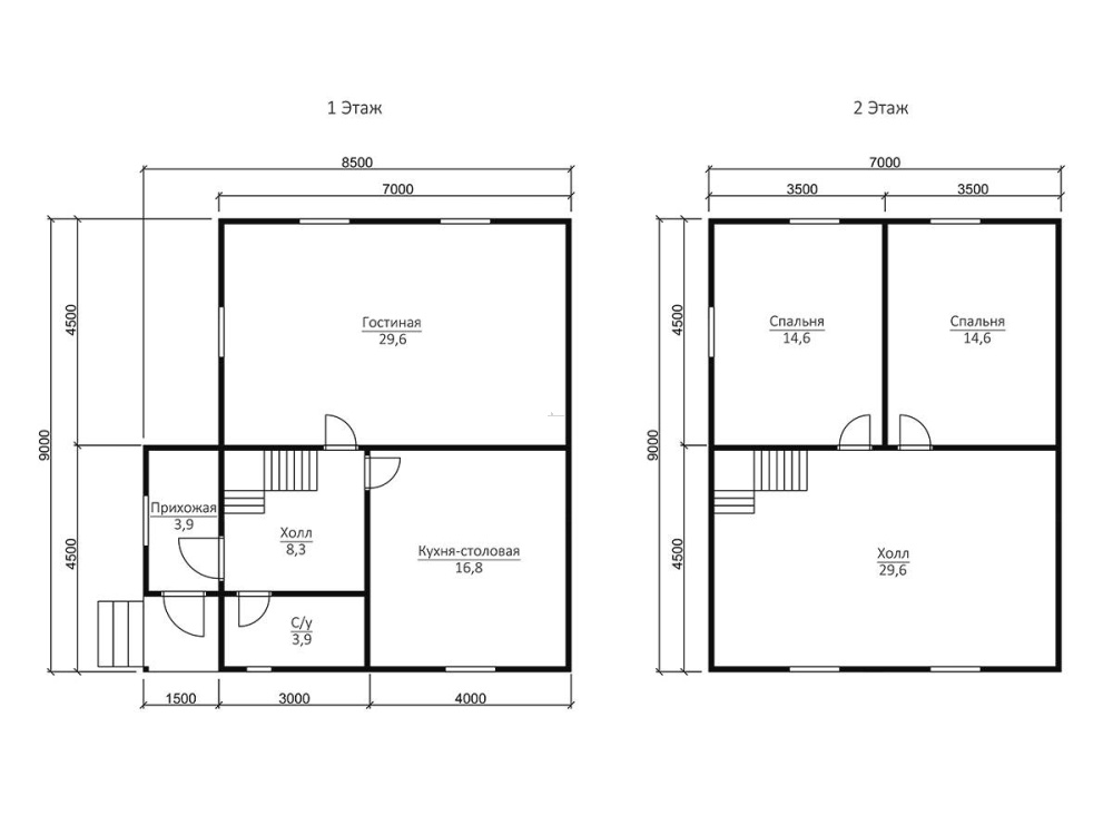 Самые востребованные сегодня размеры: мини - до 50 м2 (чаще всего, 1 этажные дома); компактные - от 70 до 100м2 (обычно двухэтажные); большие дома - от 150 квадратов и свыше.