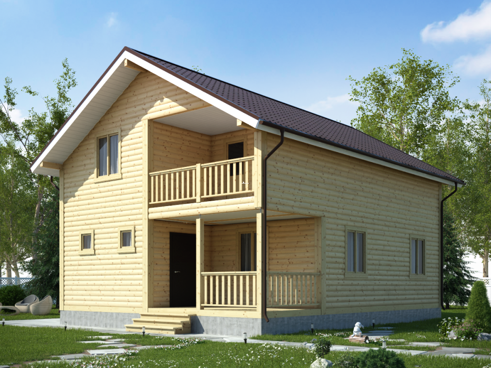 Проект 88 – полутораэтажный каркасный дом с балконом и маленькой террасой 8х10 м.. Общая площадь дома составляет 138.8 кв.м. и комфортно разместит семью или дружескую компанию.