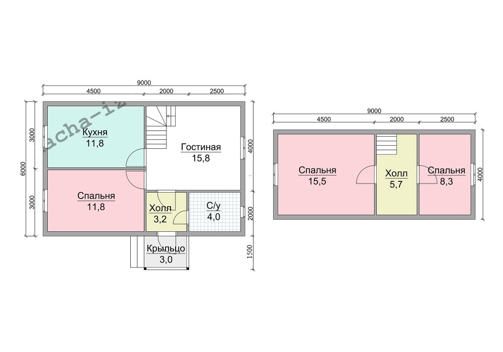 | Крыша | Двускатная, ломаная или вальмовая в соответствии с проектом. | |