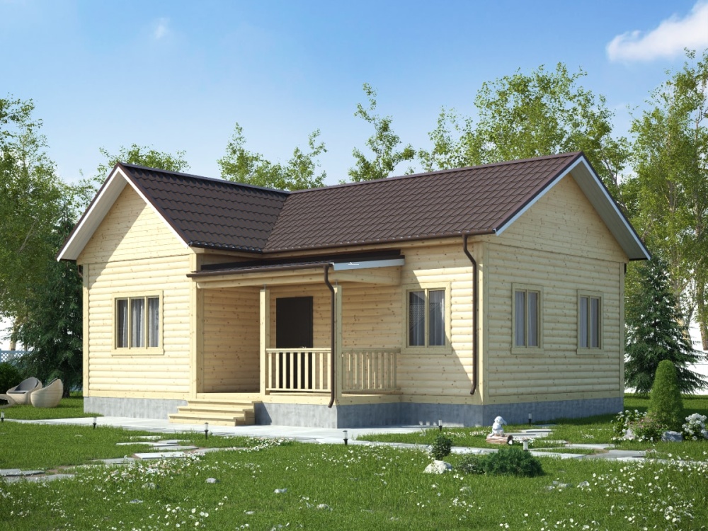 Проект 108 – одноэтажный каркасный дом с 8х10 м.. Общая площадь дома составляет 68 кв.м. и комфортно разместит семью или дружескую компанию.